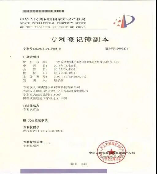 技术:寰宇股份以专注于人类身体健康为己任,板材系列产品均使用自行研发了获得国家专利的环保胶水(专利号:ZL201410115958.5)。从而极大的降低了板材中的甲醛含量,甲醛释放量达到欧美E0级标准。